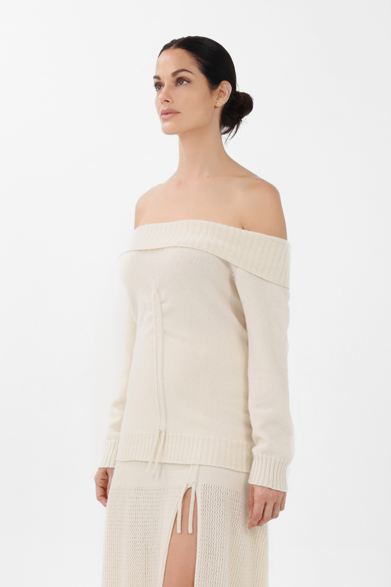 Cashmere Off-the-Shoulder Sweater in White