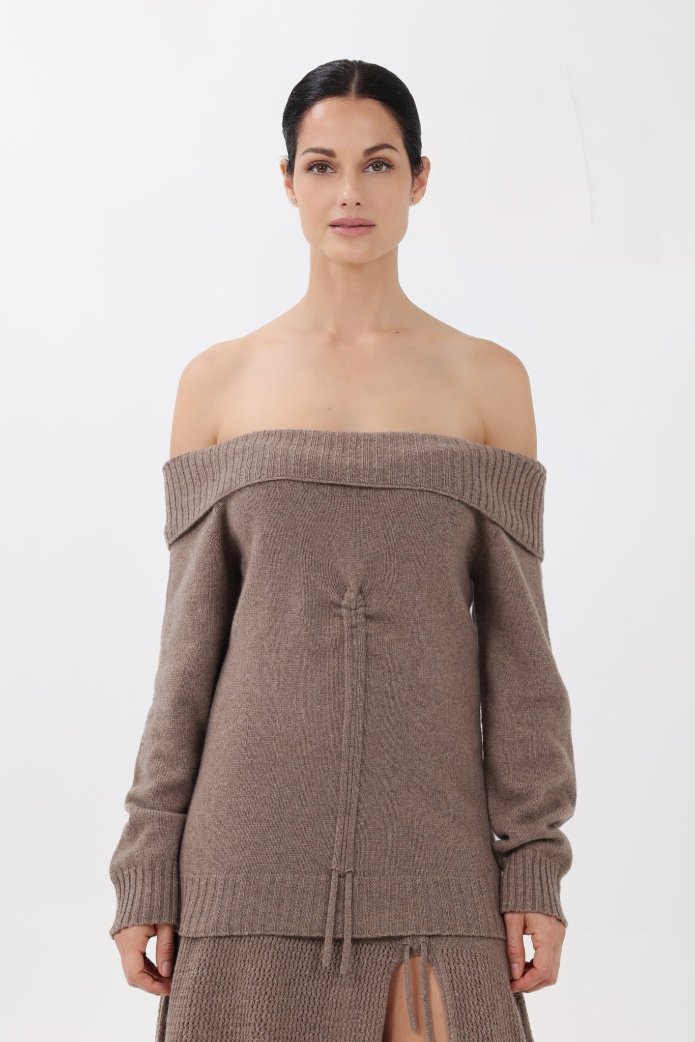Cashmere Off-the-Shoulder Sweater in Sand