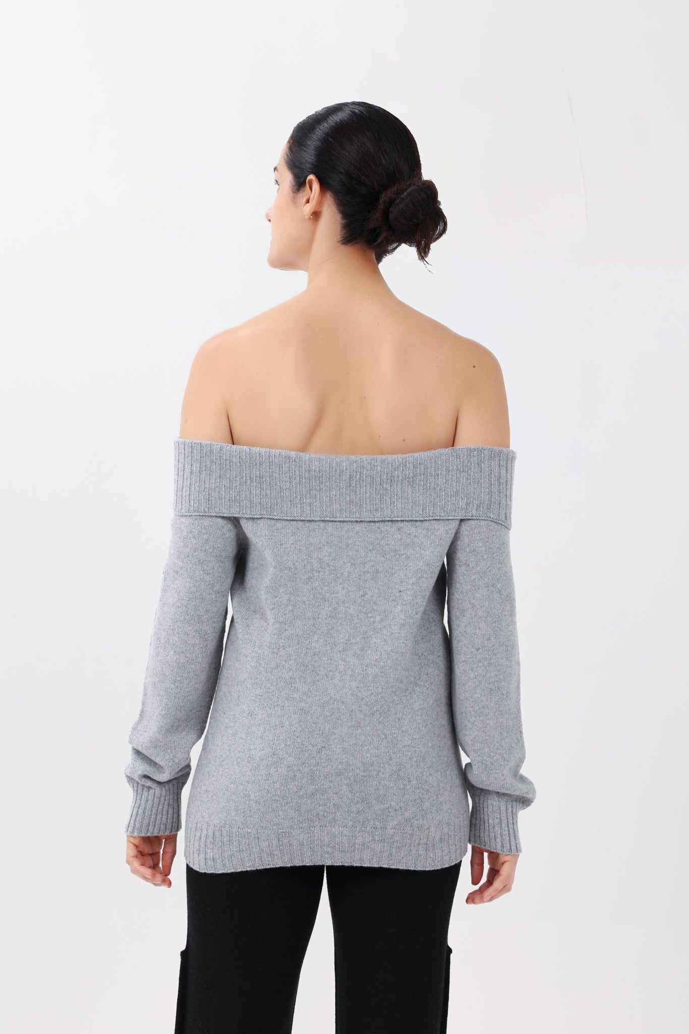 Cashmere Off-the-Shoulder Sweater in Gray