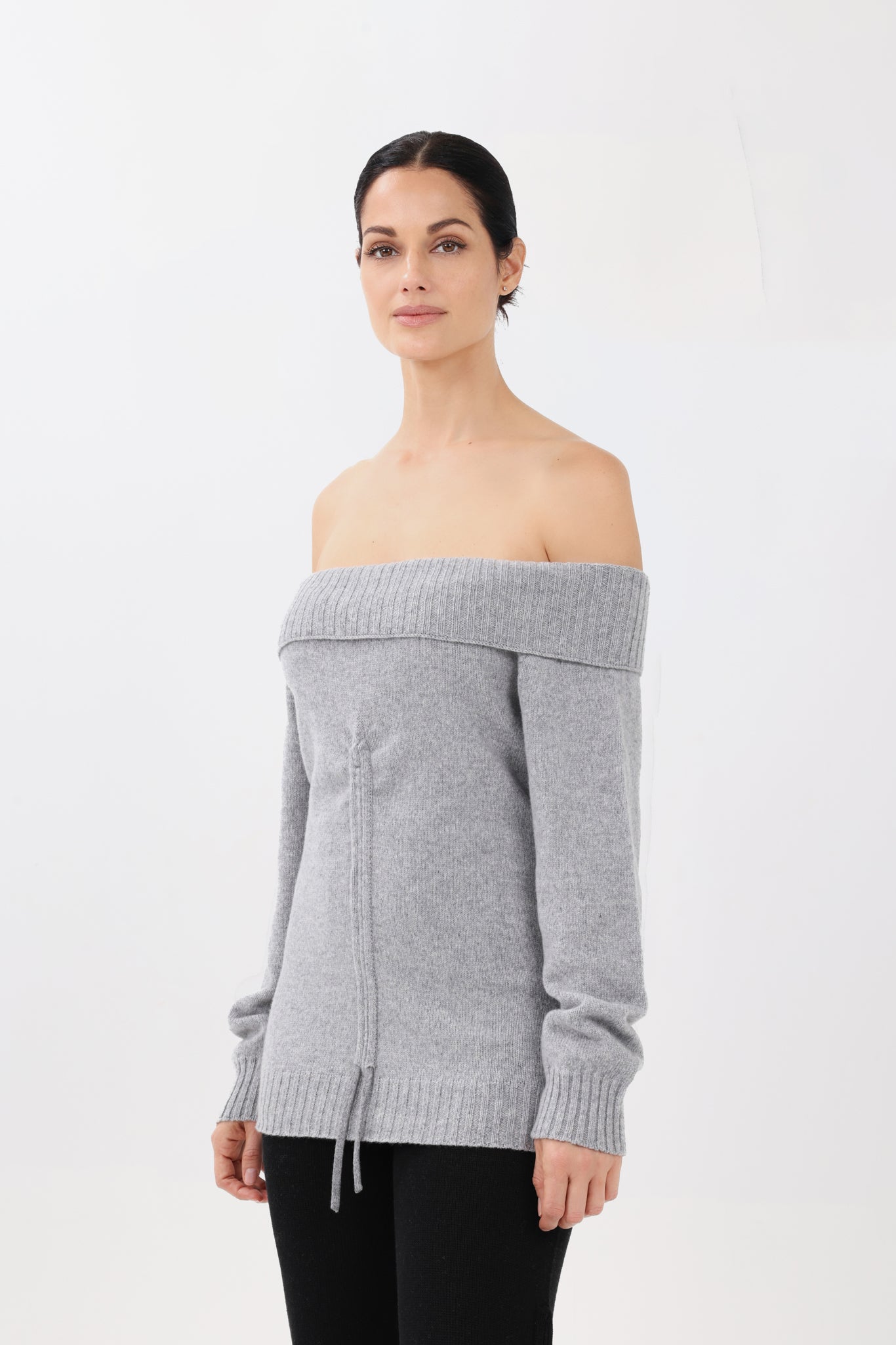 Cashmere Off-the-Shoulder Sweater in Light Gray