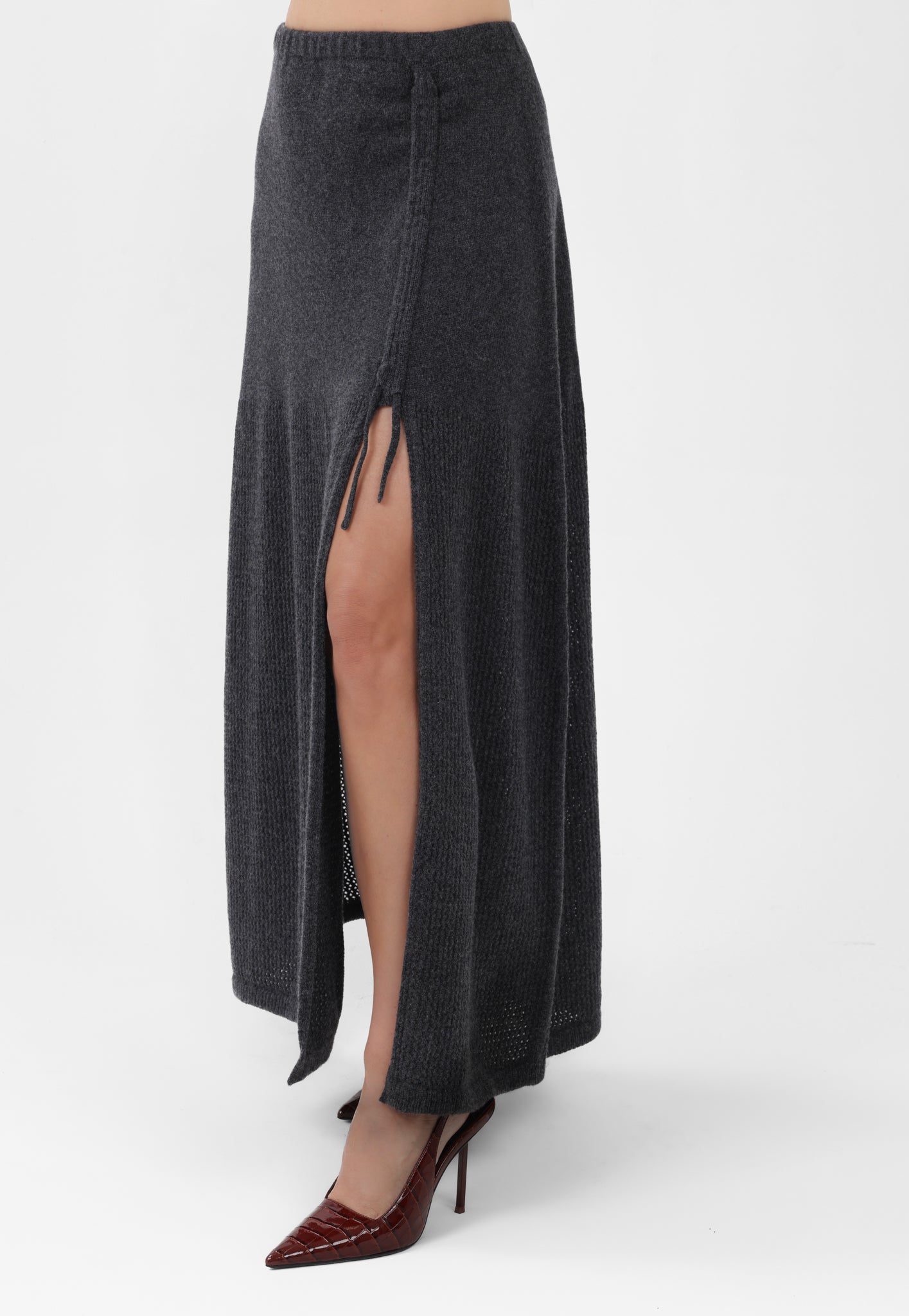 Crafted in the South of Italy, this skirt offers an extra-soft, exceptionally smooth feel with an elegant, comfortable band waist. Its defining feature is the co-designed utility: an adjustable front cord allows you to instantly lift and drape the fabric, transforming the silhouette for a personalized, versatile look. Notice the unique textural contrast, where a solid knit blends seamlessly into our signature Perforato pattern, a mark of superior Italian craftsmanship.