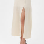 Crafted in the South of Italy, this skirt offers an extra-soft, exceptionally smooth feel with an elegant, comfortable band waist. Its defining feature is the co-designed utility: an adjustable front cord allows you to instantly lift and drape the fabric, transforming the silhouette for a personalized, versatile look. Notice the unique textural contrast, where a solid knit blends seamlessly into our signature Perforato pattern, a mark of superior Italian craftsmanship.