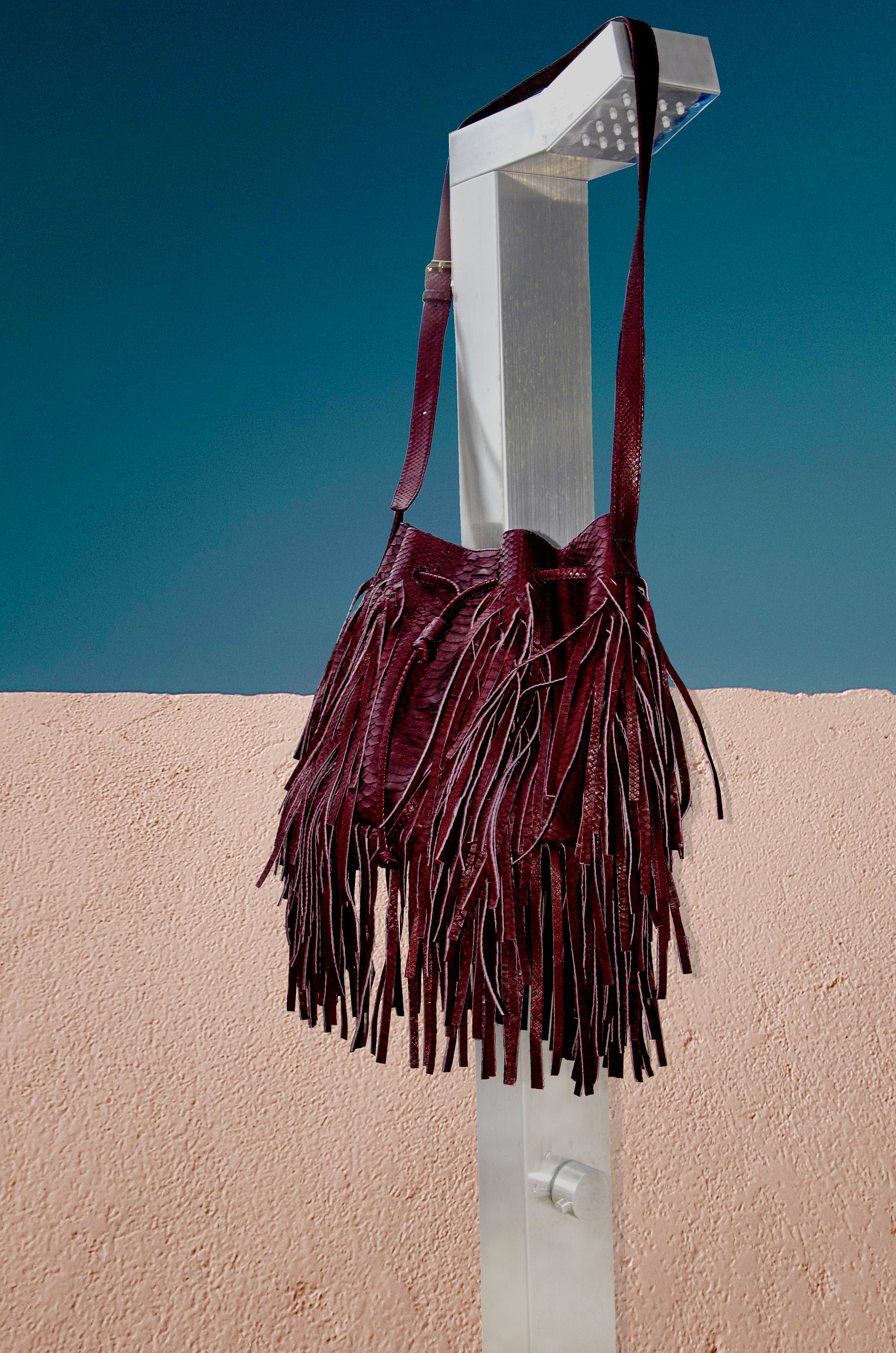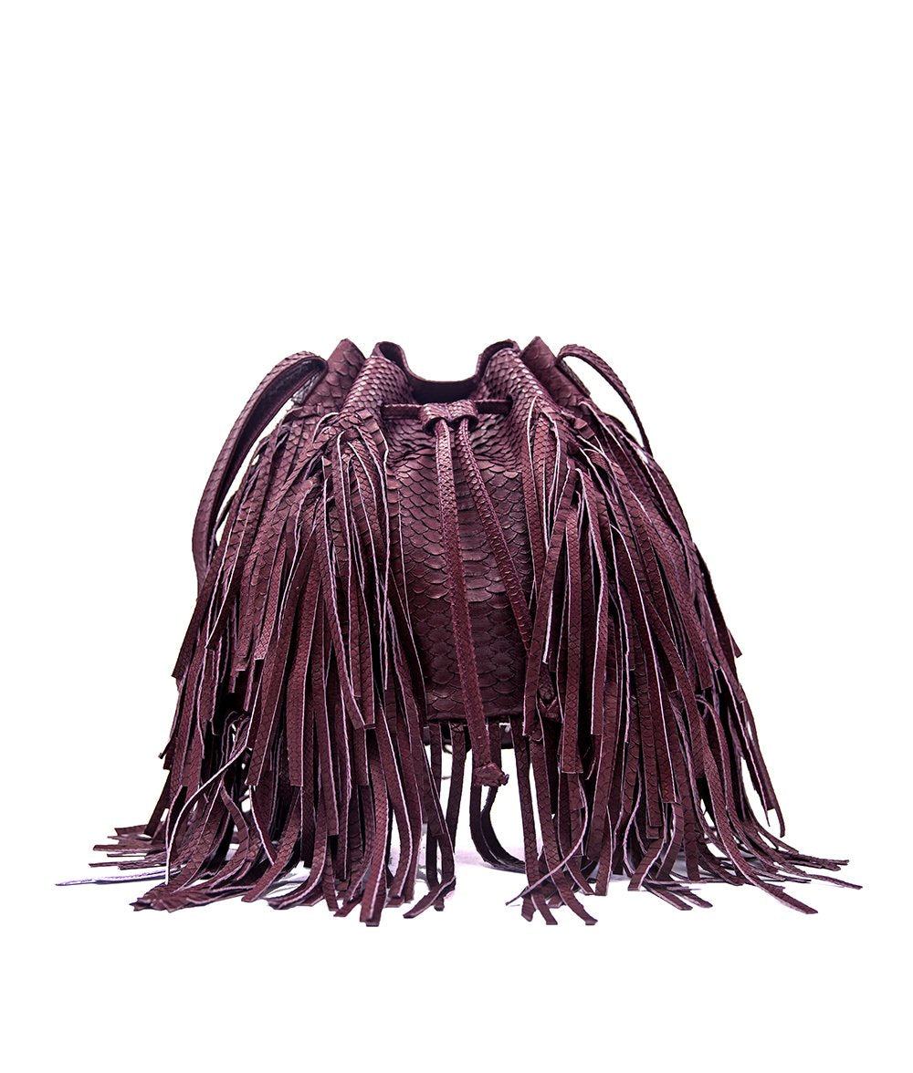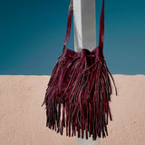 MJ Fringe Bucket Bag (Large) in Burgundy