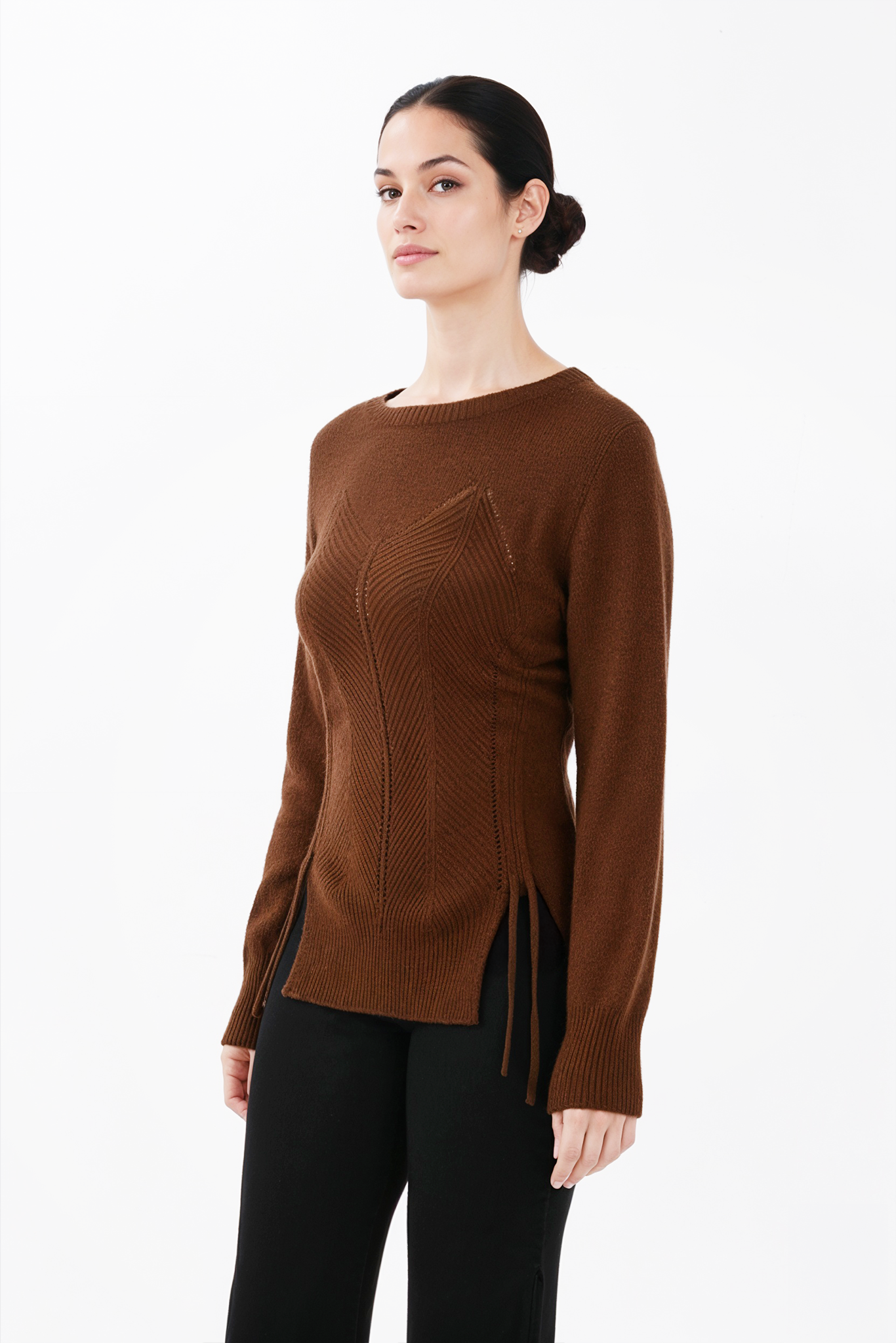 Crafted in the South of Italy, this extra-soft cashmere sweater introduces a modern take with an intricately executed corset detail seamlessly knitted into the front. The co-designed utility is realized through two subtle front cords: wear them loosely for a classic fit, or cinch them to instantly create a personalized, ruched, cropped silhouette.