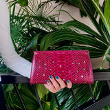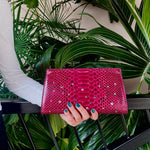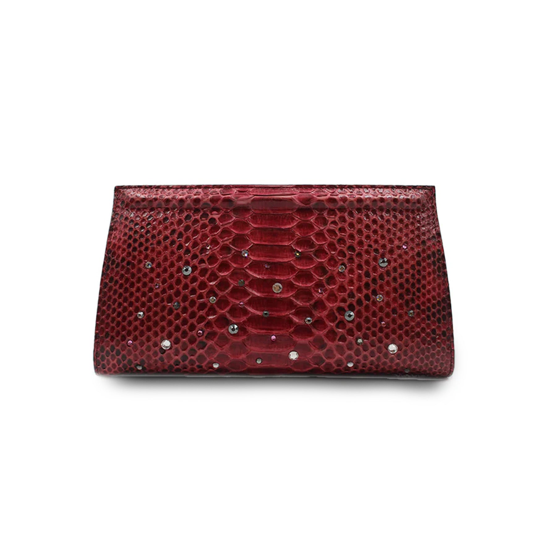Ivy Clutch in Wine Water Snake w/ Crystals