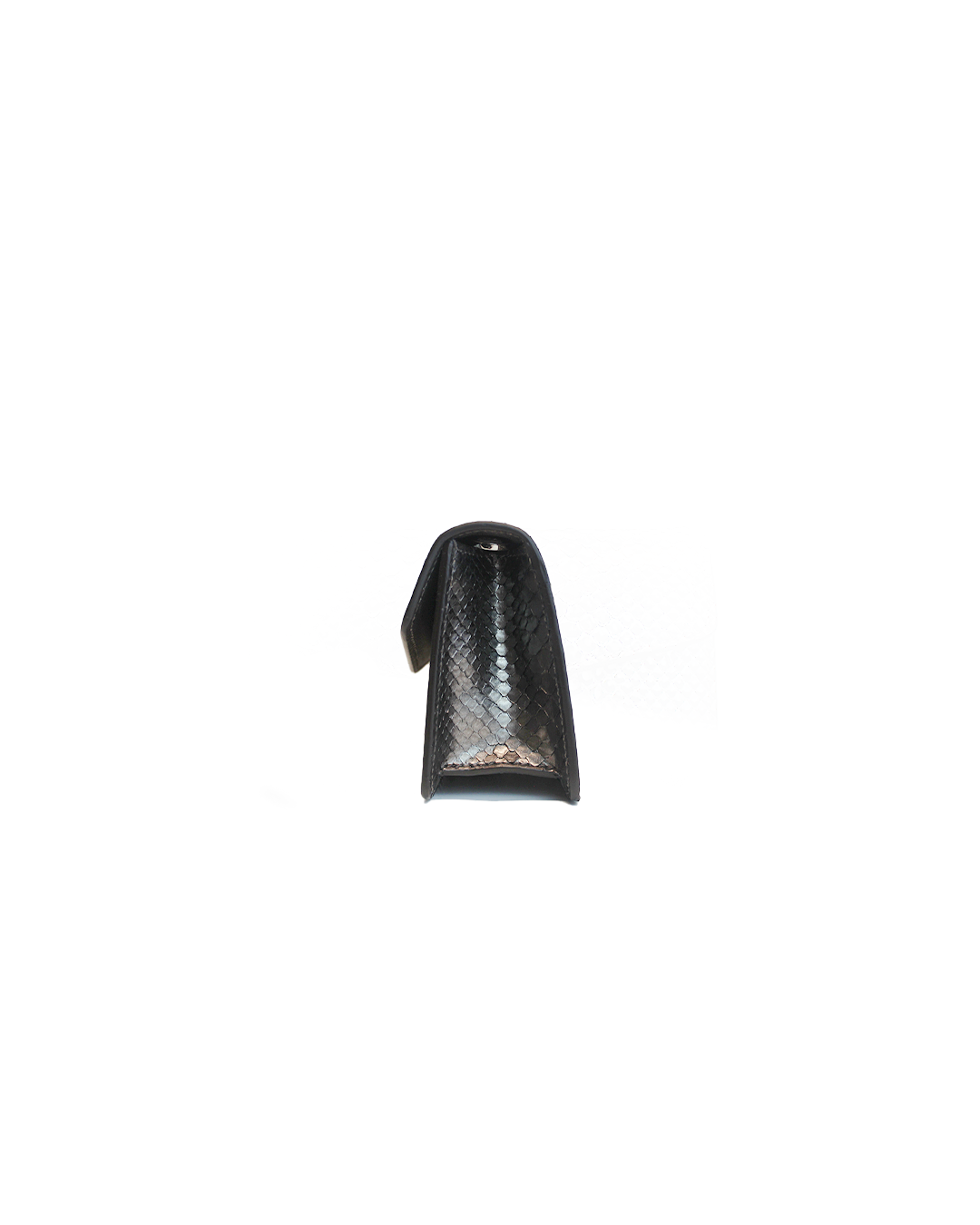 The Met Clutch, a versatile and exquisite accessory crafted from responsibly sourced Python, offers multiple carrying options with an optional chain or strap. Its features include a magnetic closure, a soft suede interior, and a slip pocket for essential documents. The clutch can comfortably accommodate a cellphone. Made in Italy, this elegant bag allows you to wear it as a clutch, crossbody, or shoulder bag, making it a perfect companion for any occasion.