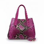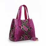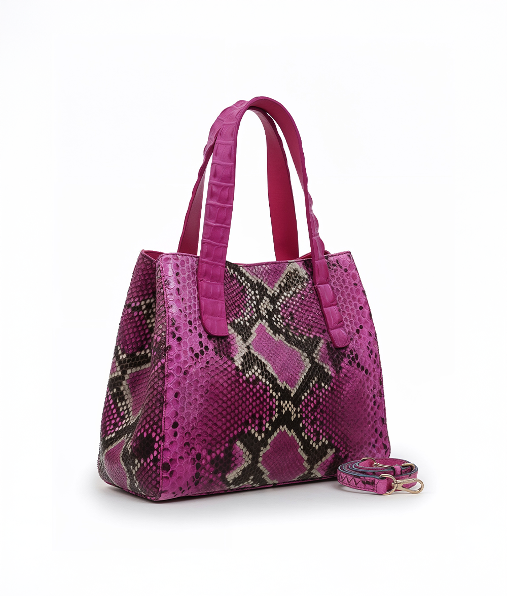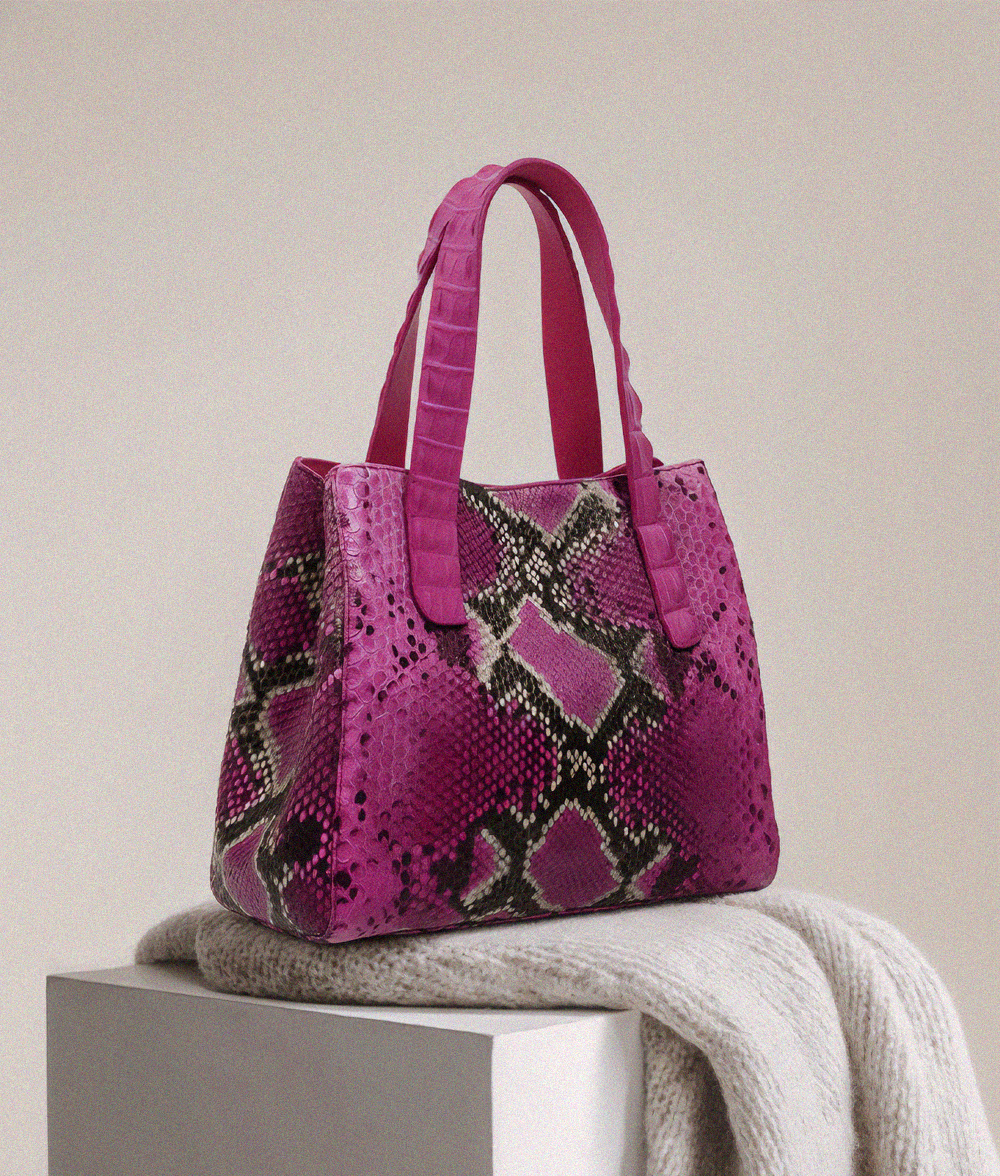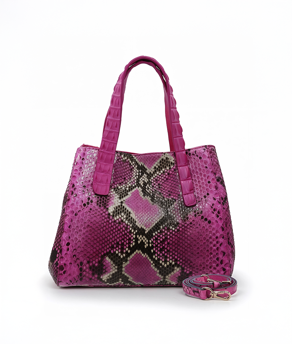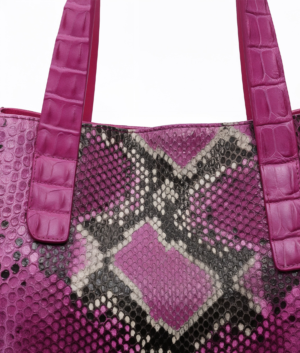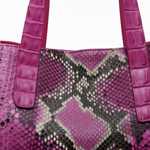 The Amanda bag, crafted in Italy, is a luxurious everyday accessory that elevates any outfit. Its body is made of responsibly sourced Python, while its detachable cross-body strap and top handles are crafted from genuine crocodile. A snap hook secures the bag on top of a magnetic snap closure. Its interior features multiple divided open pockets and a large zipper pocket with a leather trim, ensuring your essentials stay organized. With its meticulous craftsmanship and exquisite materials, the Amanda is a timeless investment piece.