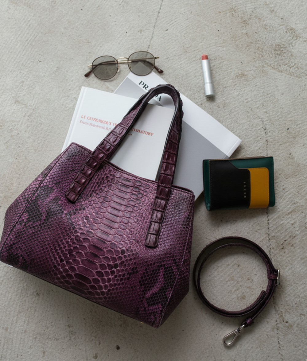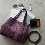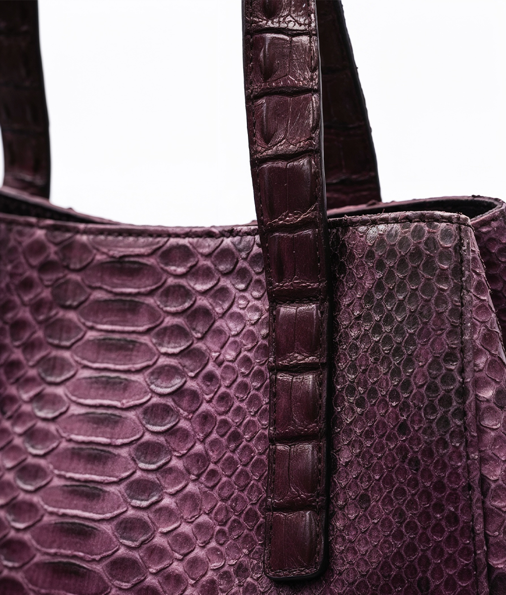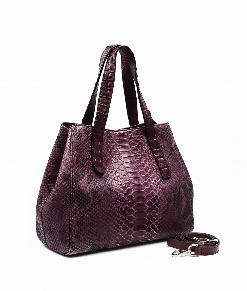 The Amanda bag, crafted in Italy, is a luxurious everyday accessory that elevates any outfit. Its body is made of responsibly sourced Python, while its detachable cross-body strap and top handles are crafted from genuine crocodile. A snap hook secures the bag on top of a magnetic snap closure. Its interior features multiple divided open pockets and a large zipper pocket with a leather trim, ensuring your essentials stay organized. With its meticulous craftsmanship and exquisite materials, the Amanda is a timeless investment piece.
