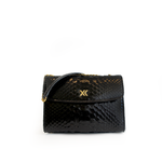 The Claudia Bag is a lightweight, structured shoulder and crossbody bag crafted in Italy from responsibly sourced python skin with a glossy finish. Its sleek design features a gold chain, a concealed magnetic snap closure and it is adorned with a metallic XK monogram on the front. Inside, you’ll find a spacious suede-lined compartment with a convenient big zipper pocket on the backside of the bag. Claudia is a timeless piece that it will not go out of style.