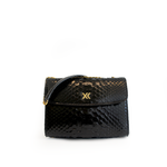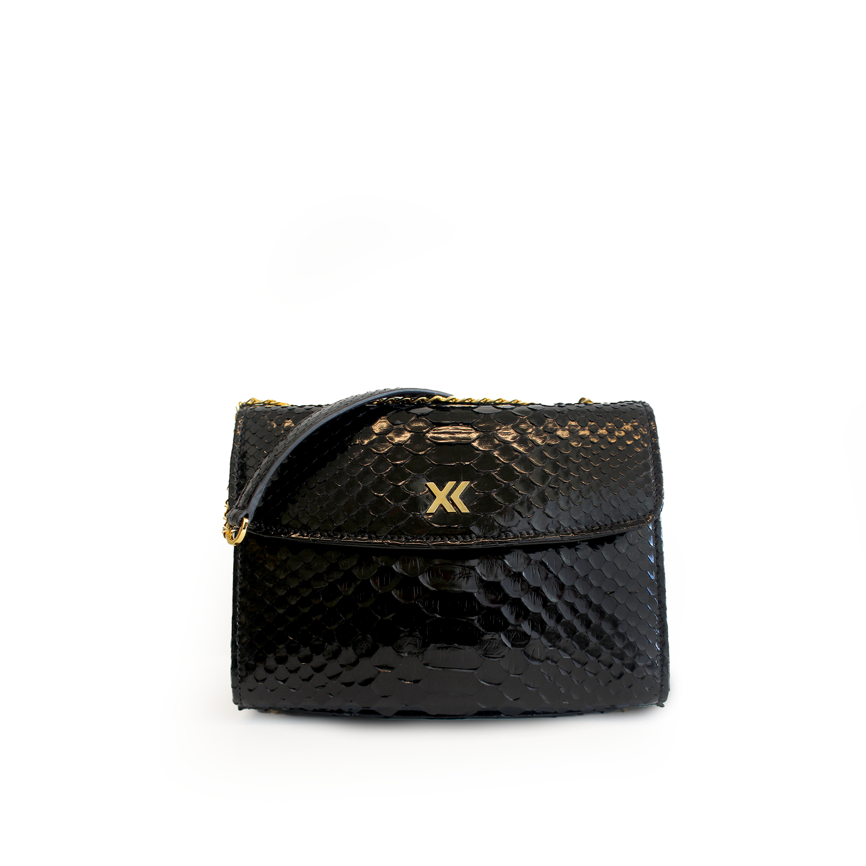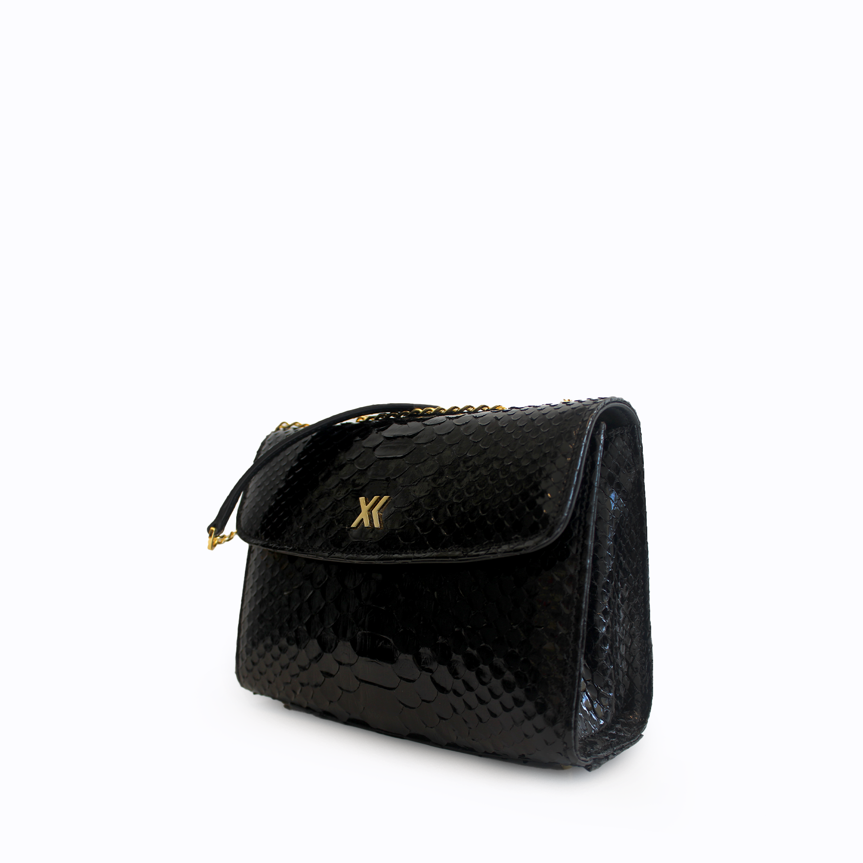 The Claudia Bag is a lightweight, structured shoulder and crossbody bag crafted in Italy from responsibly sourced python skin with a glossy finish. Its sleek design features a gold chain, a concealed magnetic snap closure and it is adorned with a metallic XK monogram on the front. Inside, you’ll find a spacious suede-lined compartment with a convenient big zipper pocket on the backside of the bag. Claudia is a timeless piece that it will not go out of style.