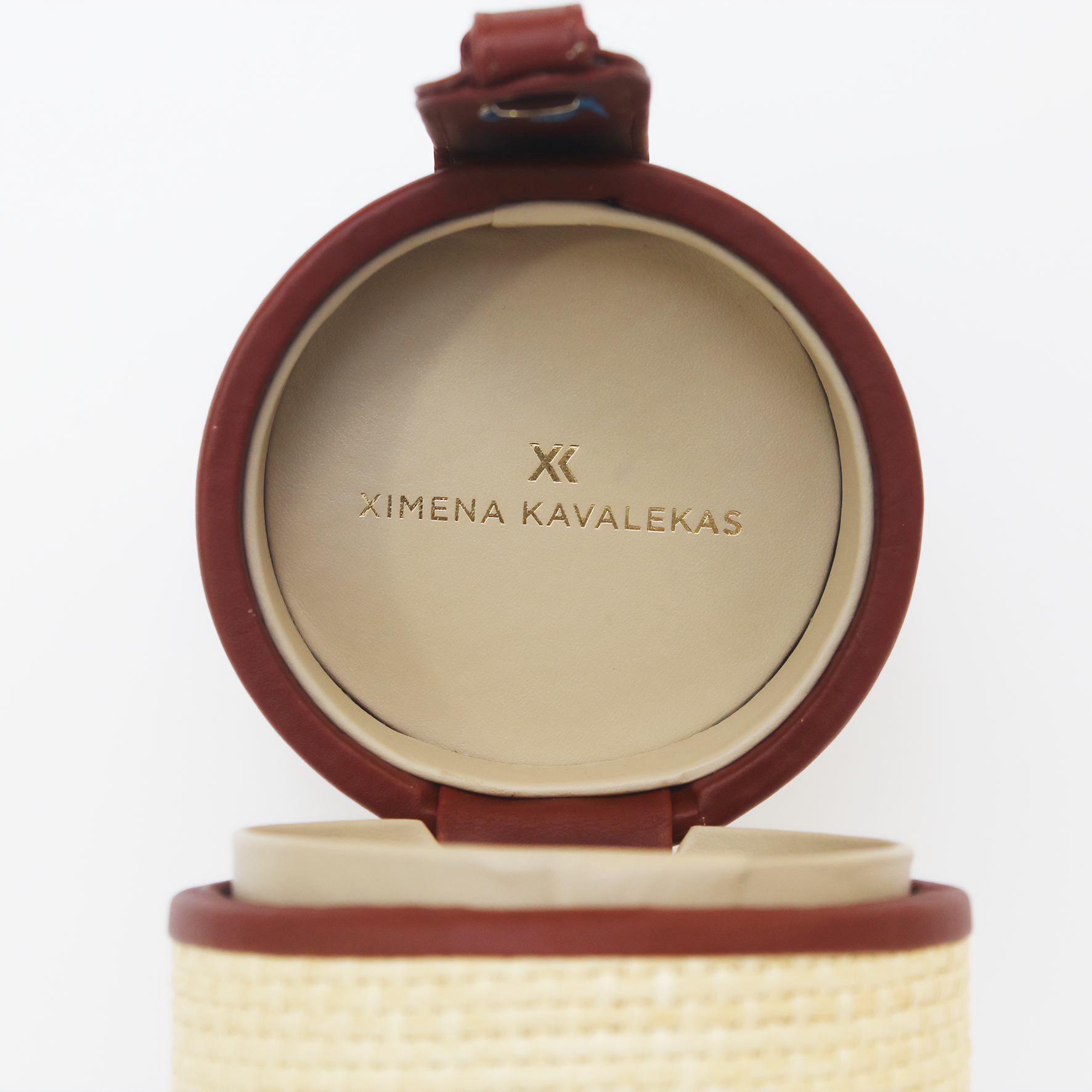 It also comes with a standard leather-trimmed raffia phone case; you can either hang it around the handle or wear it as a bracelet.