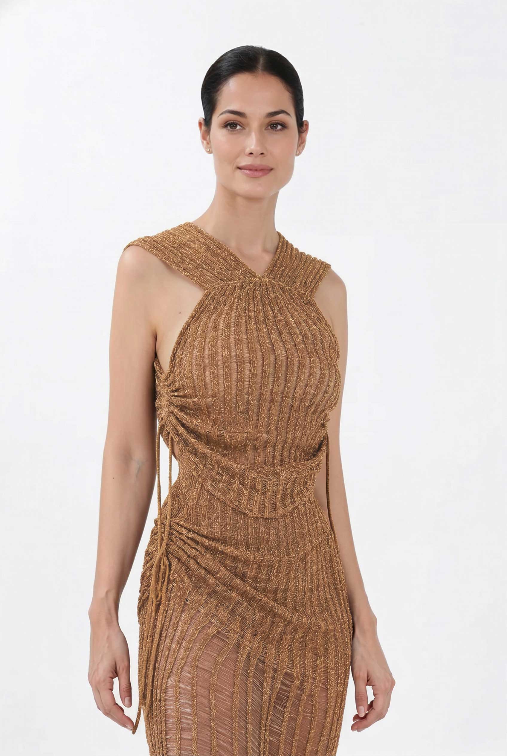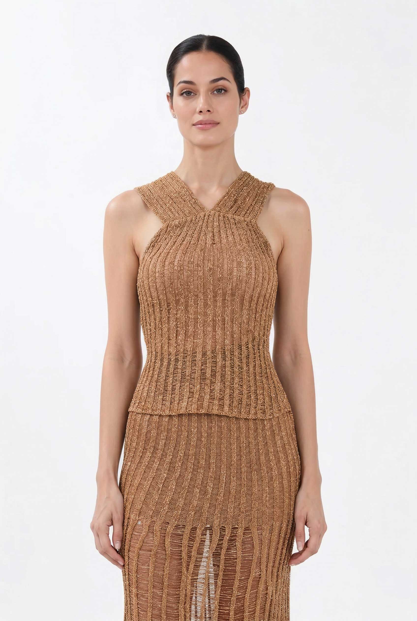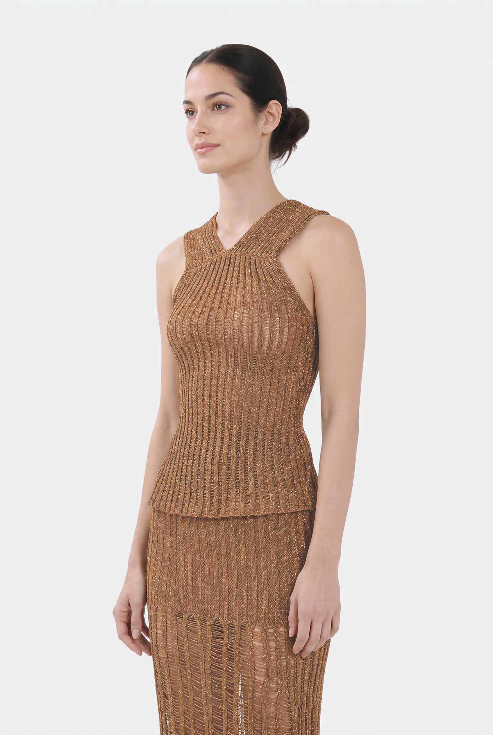 Luxe Long Sleeve Ribbed Shirt in Gold