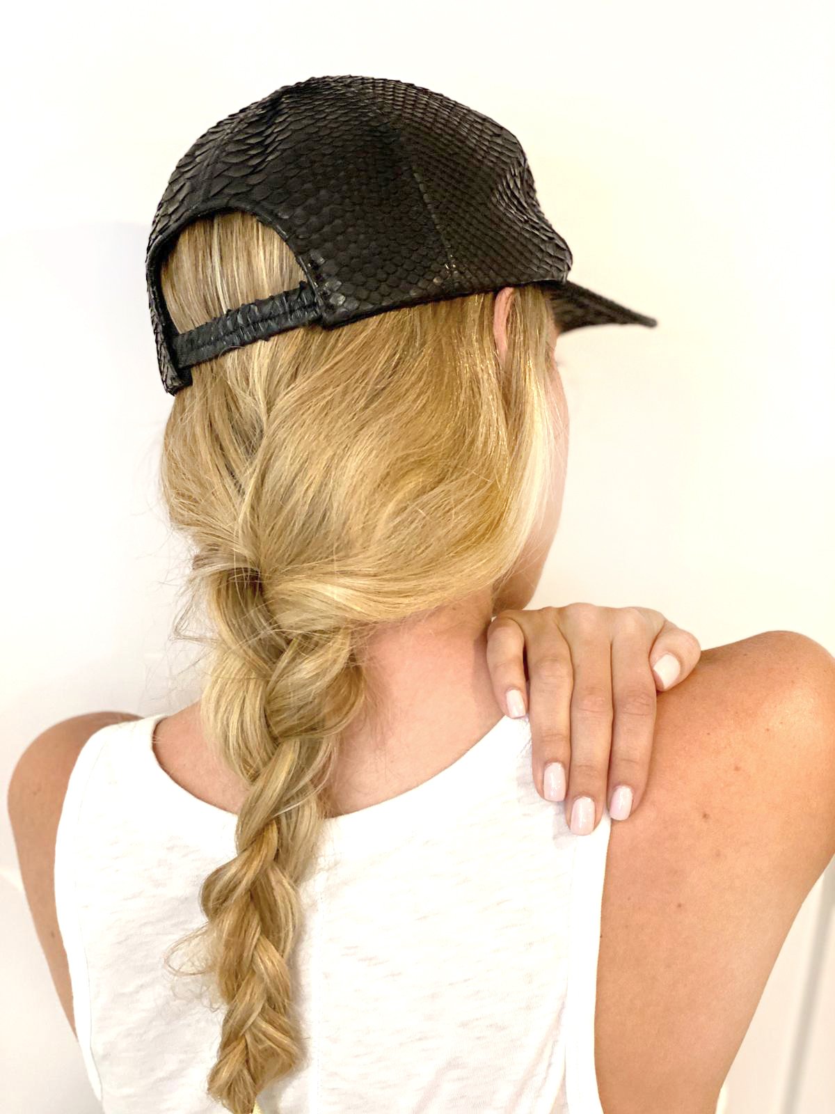 This stylish cap showcases an elastic adjuster in the back. Made in Italy from responsibly-sourced-Python.