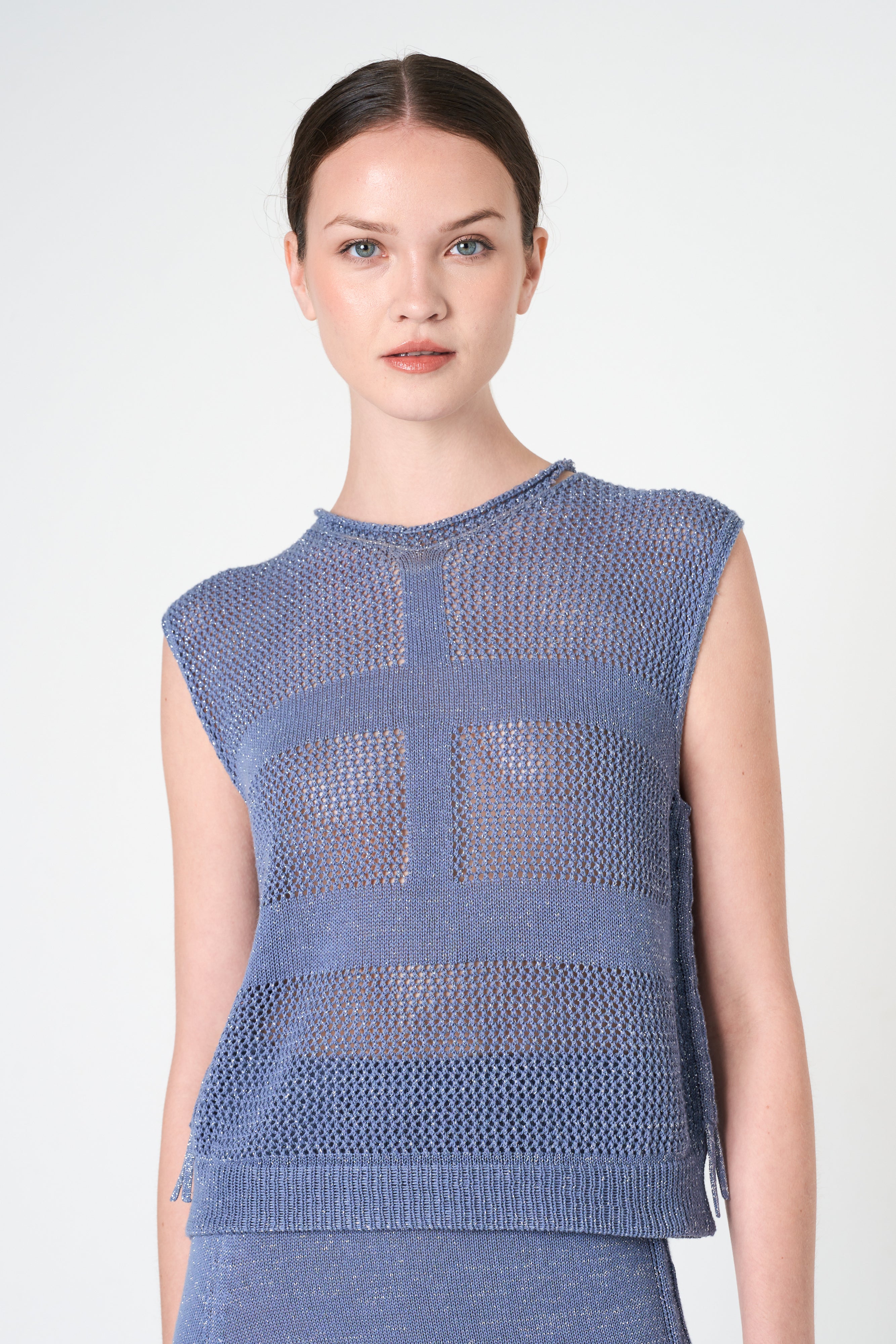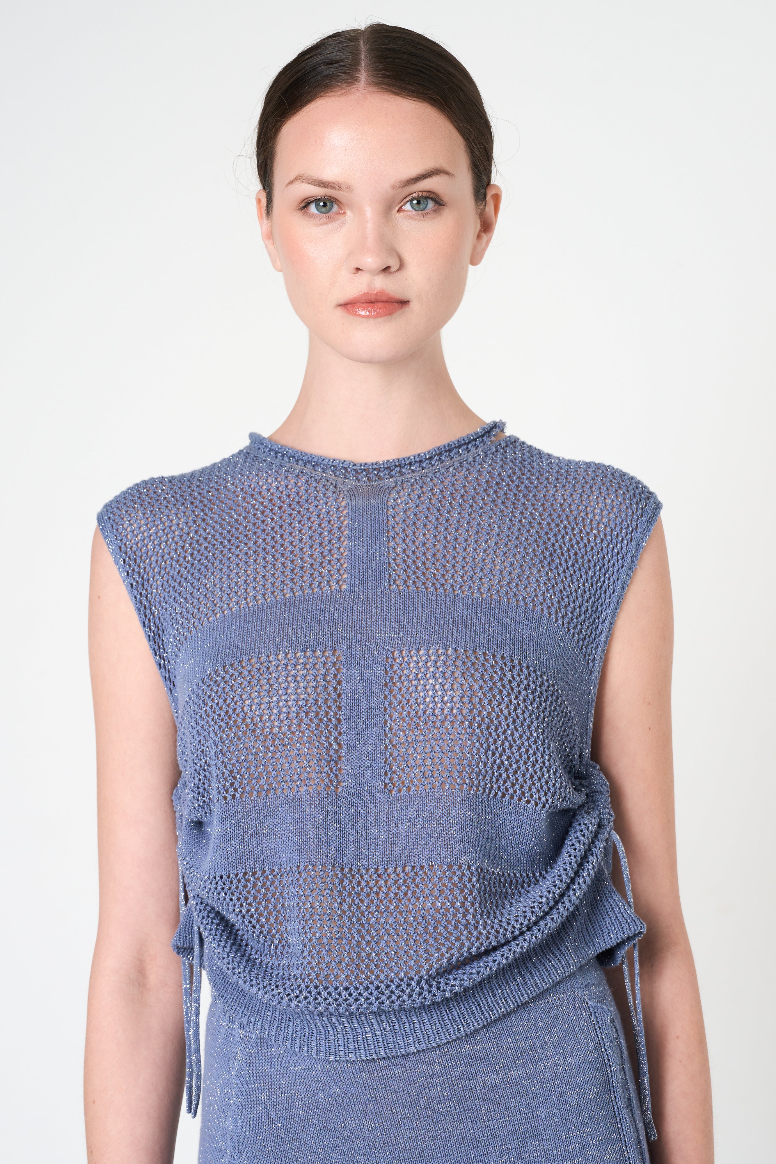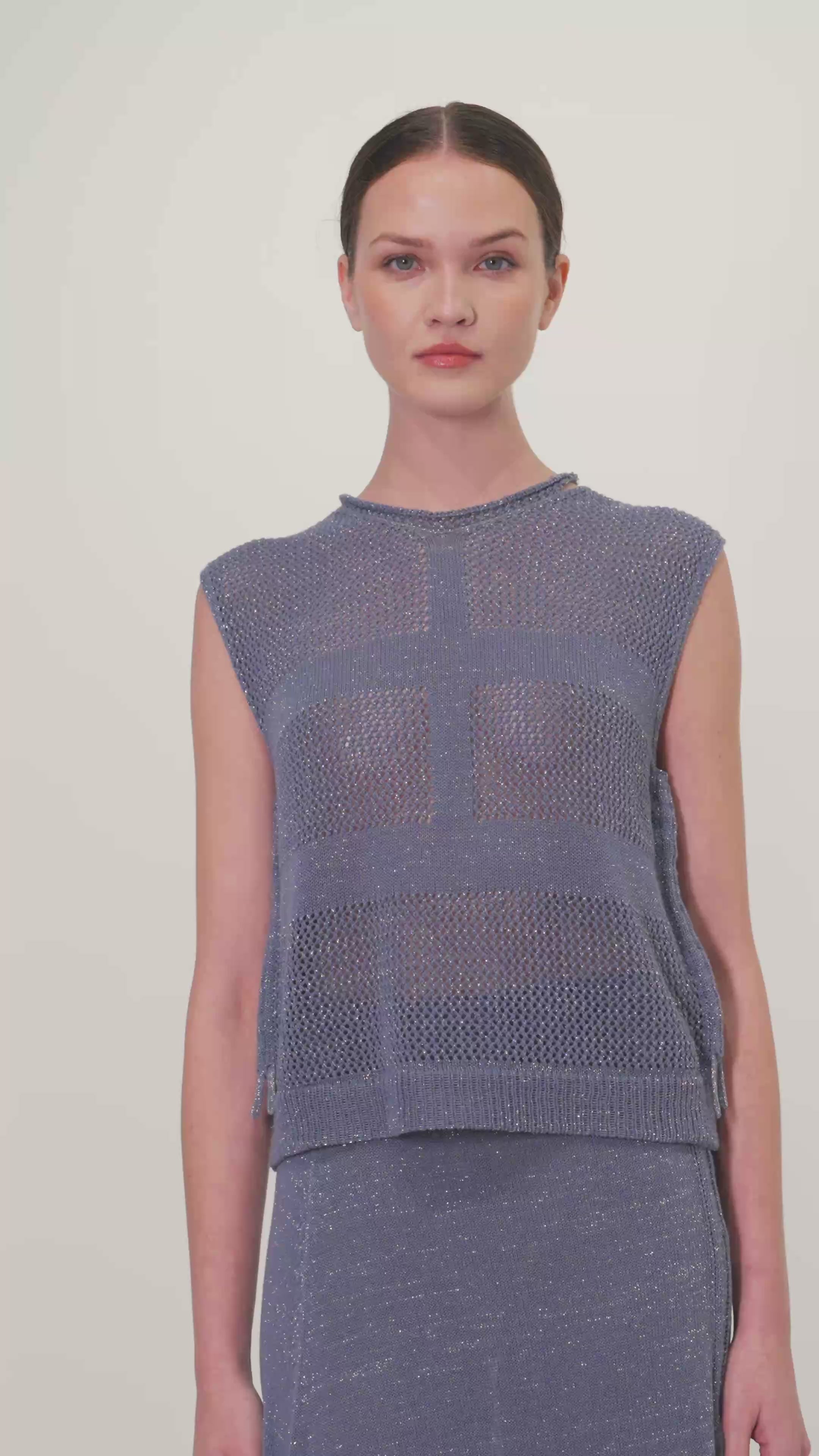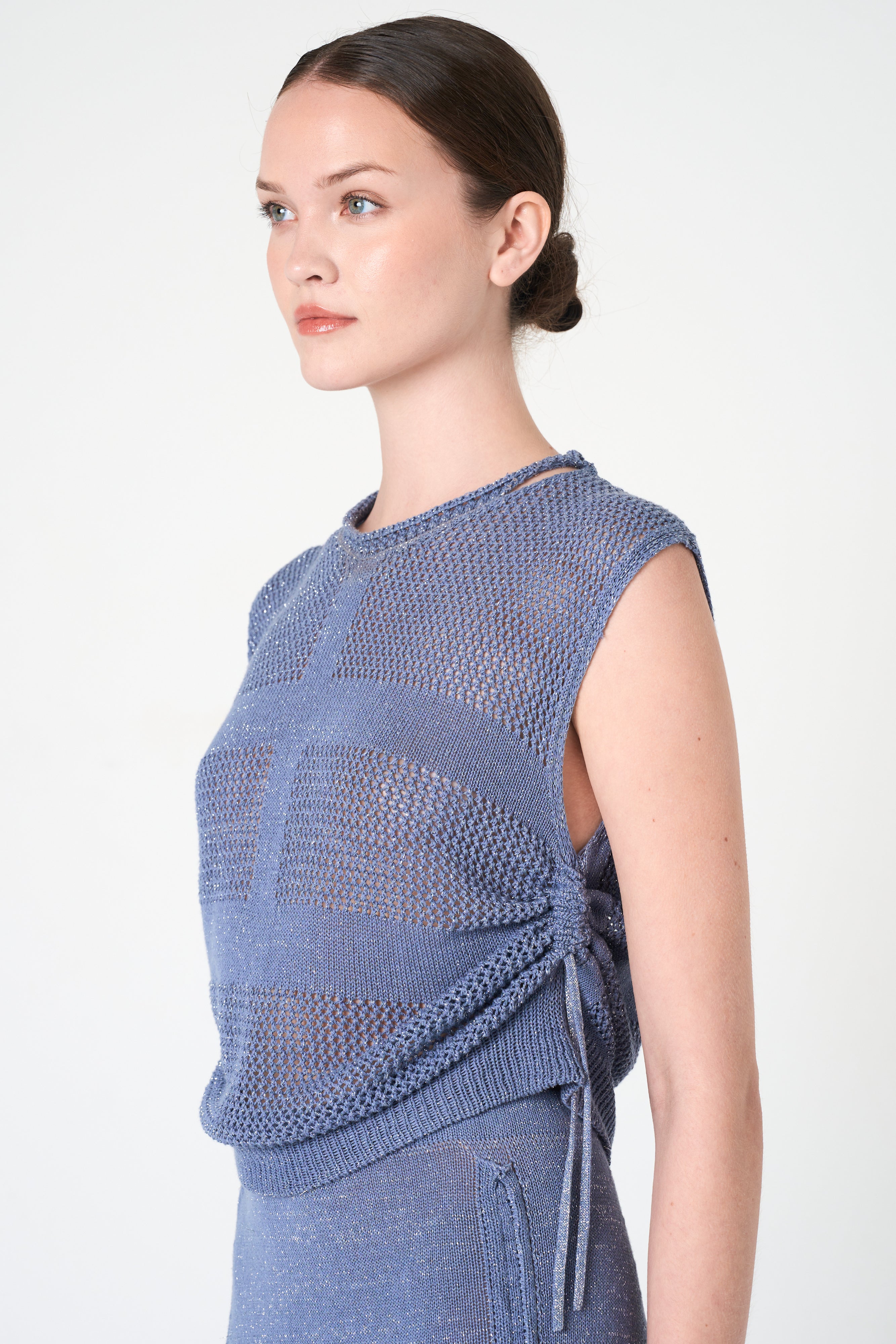 An exceptionally smooth feel meets a refined silhouette. This top is a consciously crafted statement, featuring a unique perforated knit with subtle Lurex shine for a touch of glamour. Designed for adaptability, adjustable side cords allow you to easily cinch it to your desired cropped length. Made in the South of Italy, it's the versatile piece that instantly elevates your look.